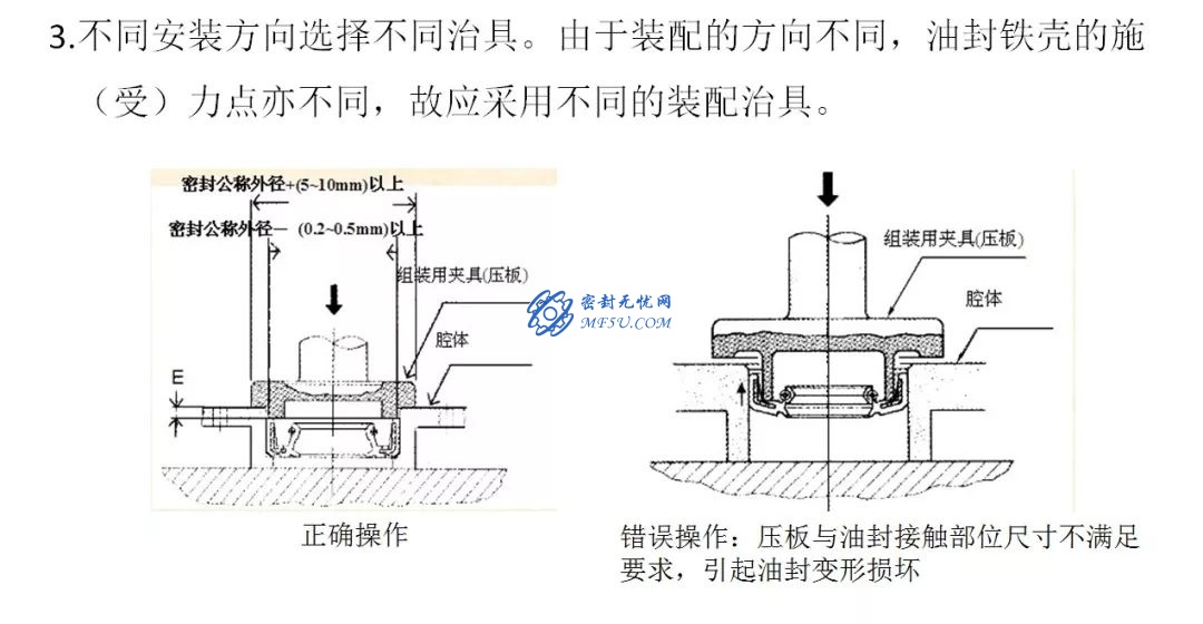 4、安裝油封時,一定要使唇緣端朝向被密封的油液一側,切忌反向裝配。